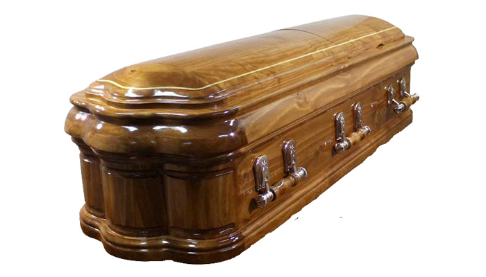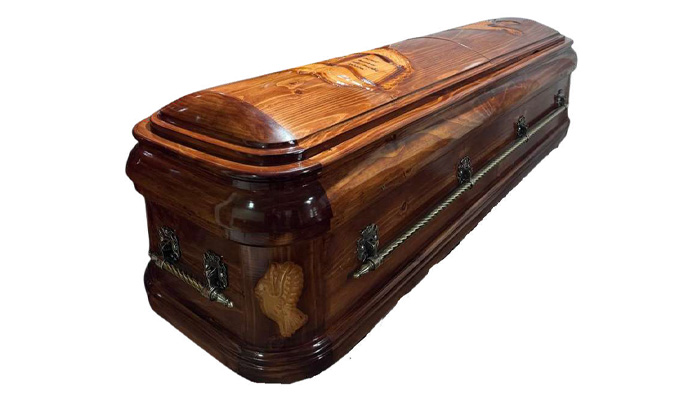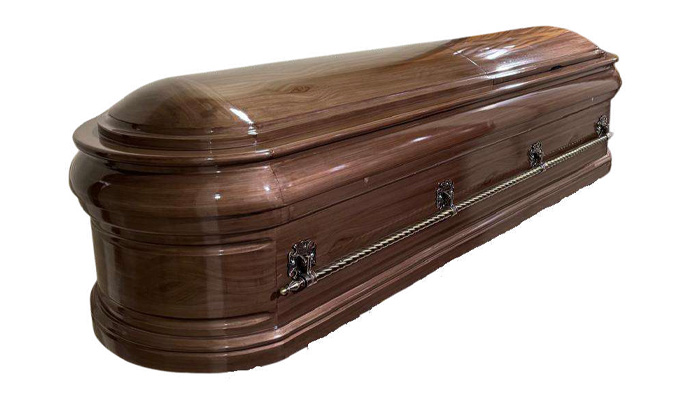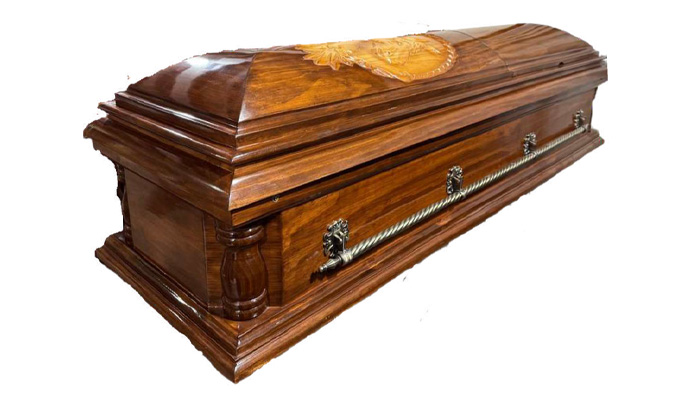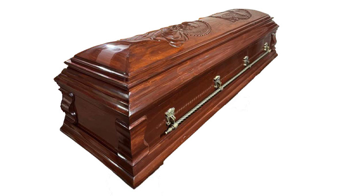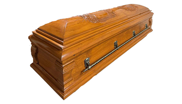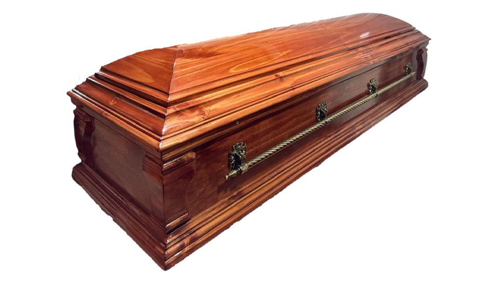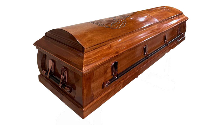 Una alternativa de elevada nobleza, con un ataúd de madera americana en tono castaño, que transmite calidez y respeto. Con carroza panorámica, capilla de luces o cirios y vehículos de acompañamiento, la ceremonia se desarrolla con solemnidad.